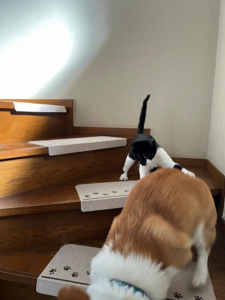 犬も子猫さんも相変わらずですが、わりと仲良くなってきました。