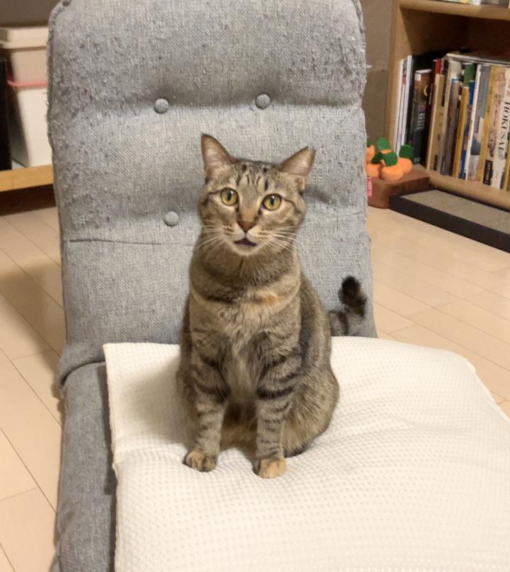 背後に従えているのは里芋さんが自分のものだと思って毎日飛びかかっている歴戦の座椅子です