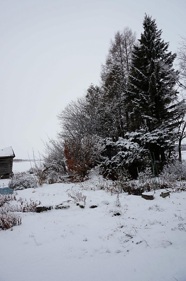 今朝起きてみたら雨の後また雪に変わったらしく、ザラメみたいな雪が上に被さっている感じでした。