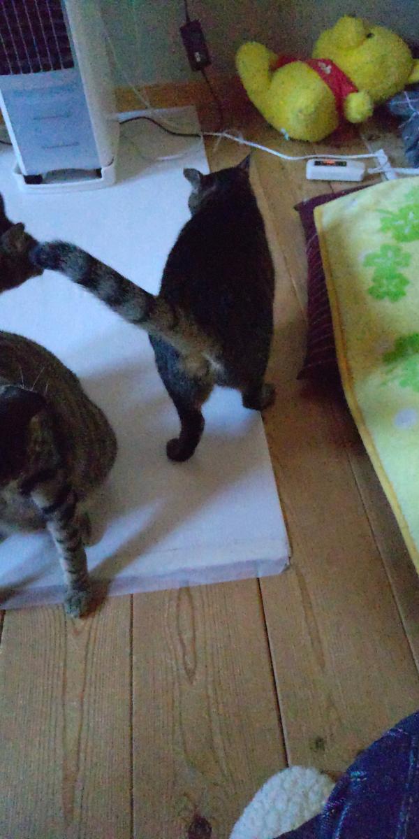 寝室に入って来ると、必ず私に鳴いて挨拶して通り過ぎていく。
