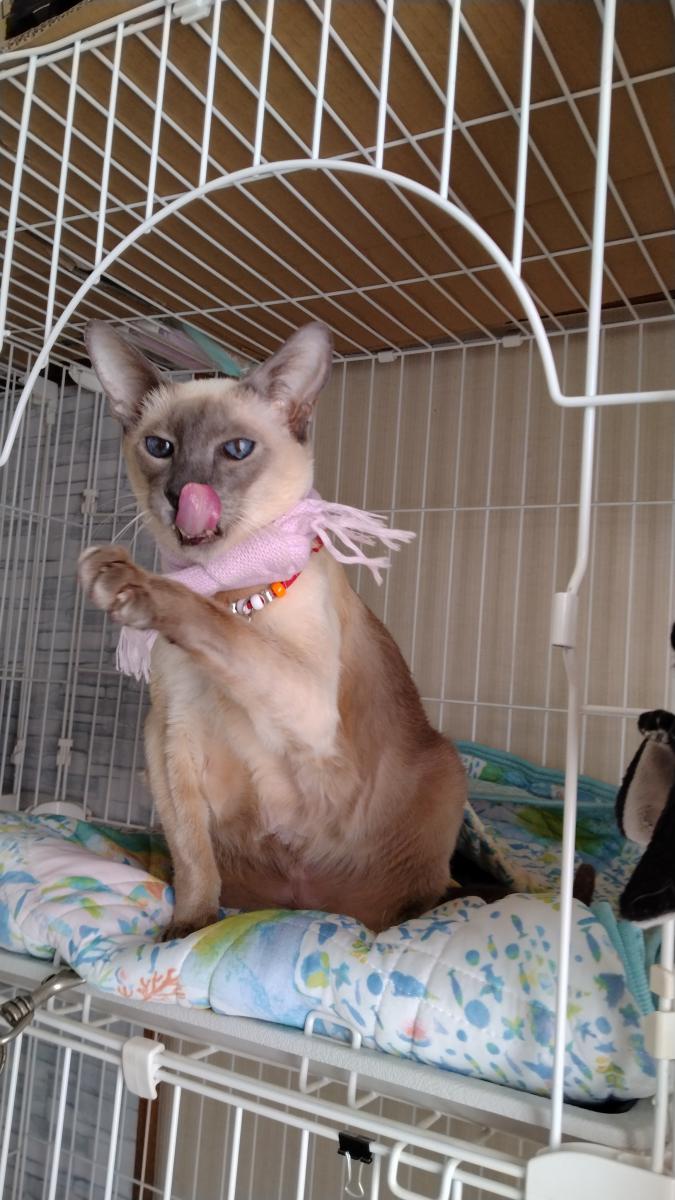 ルビィ😻「母ちゃんたら あたしに運動させようとして、ゴハン箱 あっちに置いたり こっちの高い所に置いたり、ヒーヒーだよー(^▽^;)」