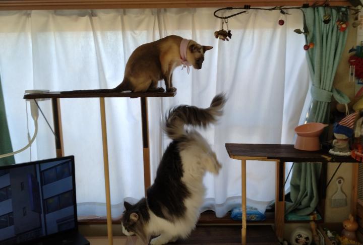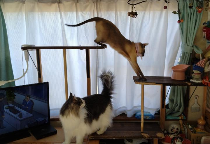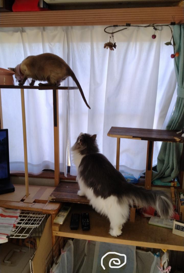 麻花瑠🐱「ああ、きっと全部 たべちゃうよなー・・でも 跳び乗ったり下りたり、元気で いいやー(*^-^*)」