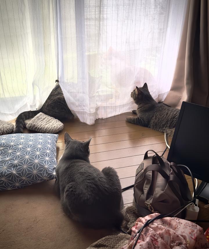 空気入れ替え中にお外を警備に来たニャンズ🐱