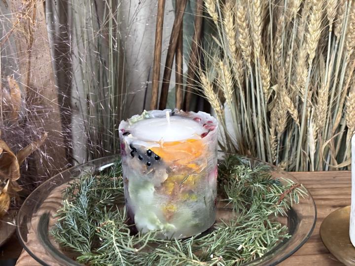 お庭で収穫した植物をドライにして下さっていて、それを使ってボタニカルキャンドルを作りました。