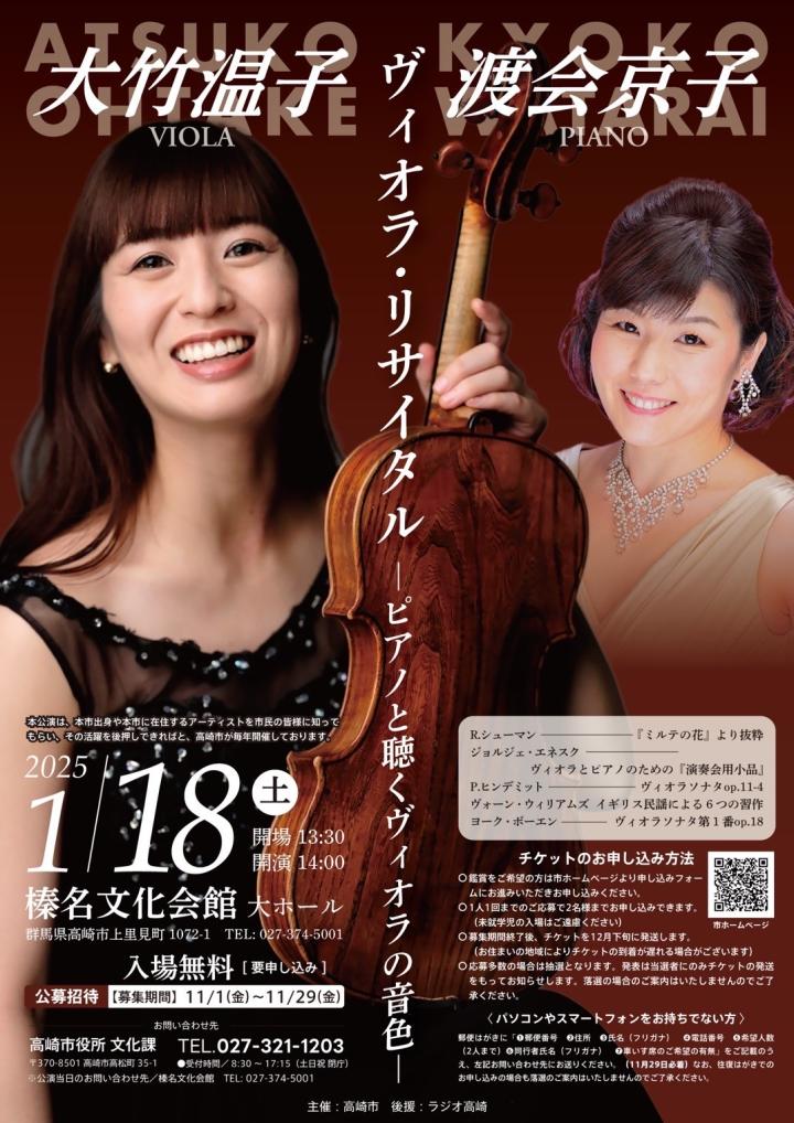友人に誘ってもらって、ヴィオラリサイタルに行ってきました。
