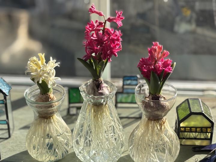 年末に投げ売られていたヒヤシンス🪻の球根、3個だけ水栽培しました。