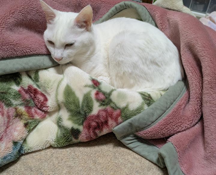 2017年6月、頭にVの字のマークがある赤ちゃんの頃、ちーちゃんが我が家にやってきました。今はほとんど消えてしまい、黒い毛が数本ある程度です。 タケオくん、王子と家族から呼ばれています。 20...