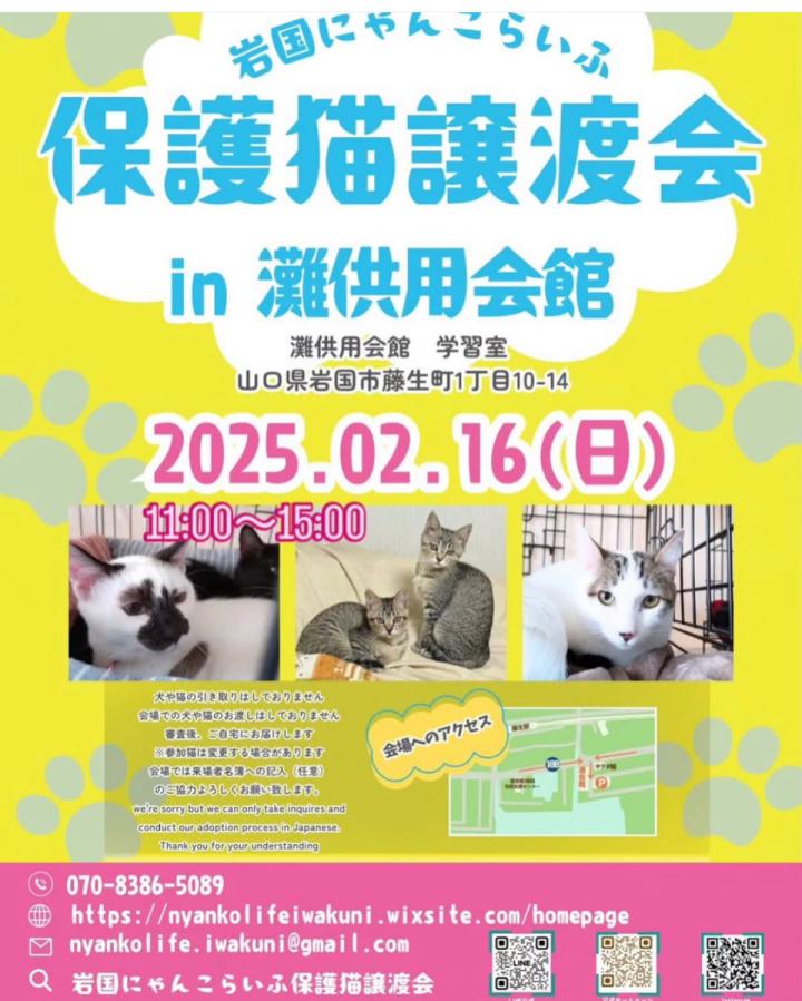 明日「岩国にゃんこらいふ」さん主催の譲渡会に参加しま〜す✌️