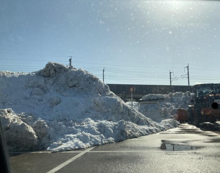 買い物に行ったら駐車場を除雪した雪が端に寄せられてカート置き場が埋もれていました。