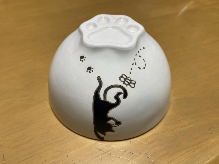 黒猫の茶碗は糸じりが肉球の形になってます