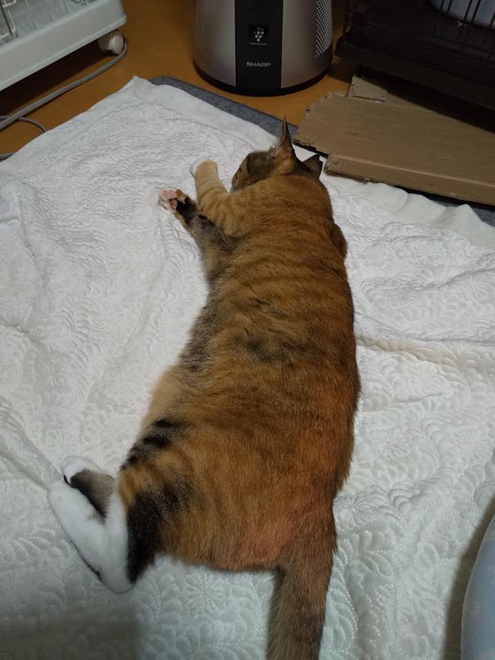 スキップを追いかけるようにチャイちゃんが不調になってしまい、こちらもどうしたものかと新たな悩みです、病院には行っていますがまぁ様子見と。元々良い状態ではないのだから波はあるよね的な…先生から見ると大きく変わりは無いようです。せっかく体重が4キロ超えて喜びも束の間、3.9に落ちてしまいました…飼い主としてはこれからの挽回に注力したいと思います。