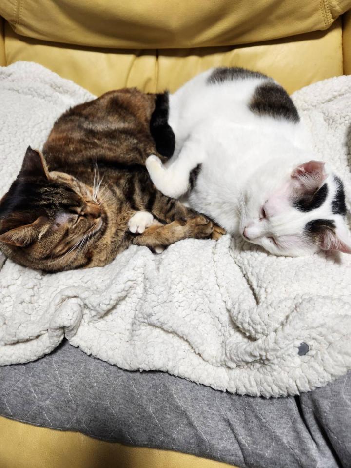 ここ1~2日距離が縮まってきて、今日6時間くらい出掛けて帰ってきたら、寄り添って寝ていました!!