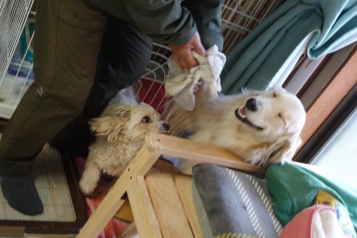 大五郎🐶「ぴみちゃん🐶、手々ふいてもらって嬉しそうだねー(^^♪」