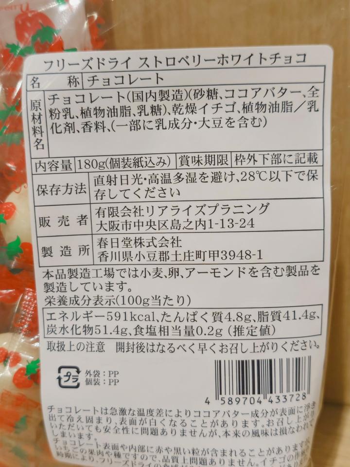おすすめは小豆島で作られたホワイトチョコ(いちご入り)です。国産なので安心ですし、美味しいです。