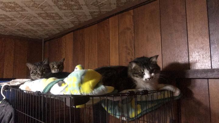 3人ともケージの上のフリースが大好き。暖かいもんね。
