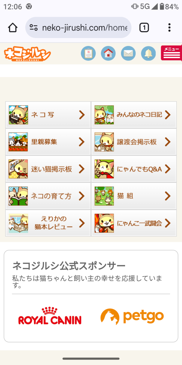 ネコジルシで「掲示板」へのアクセス経路が無くなっている事。