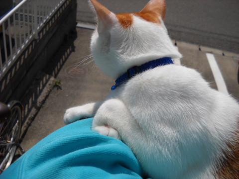 先日、めずらしく天気が良かったのでちびを抱っこして朝のお散歩中をパチリ。