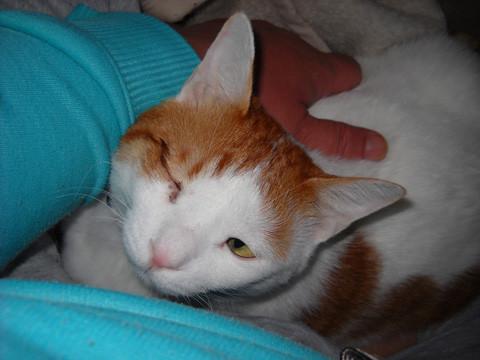 実は昨晩、私がお風呂に入っているとちびがやってきて、足を滑らせて湯船にドボン。