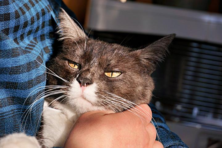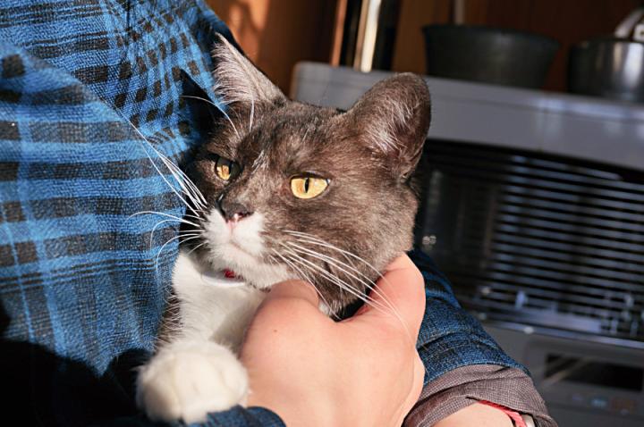 抱っこされて嬉しい筈なのに、なんだかちょっと太々しい表情に見えるのは…何故かな😅
