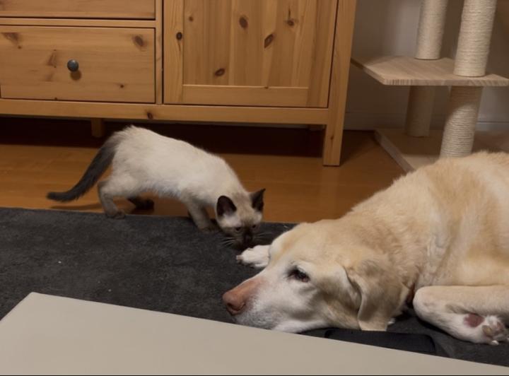 キキはラムのこと大好き!ラムの真似しておすわりを若干覚えてきたかも??