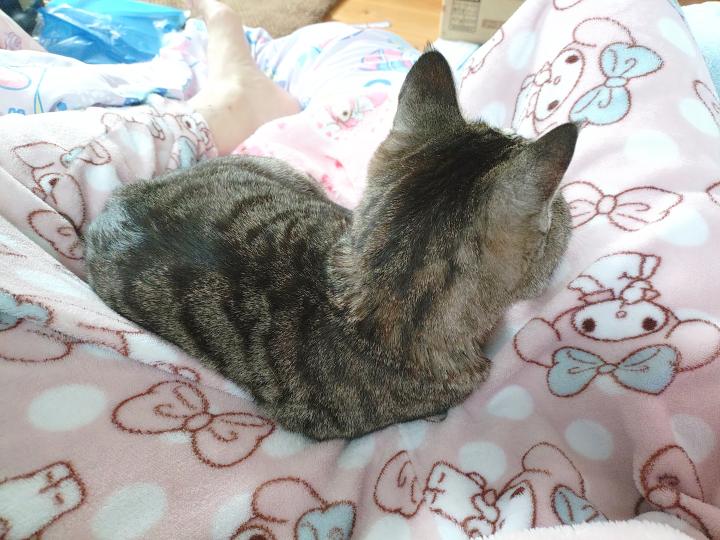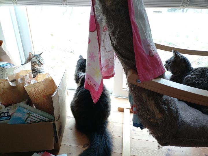 夜はコタツとダンボールハウスに挟まって寝たみたい、暖かく過ごせたかな。