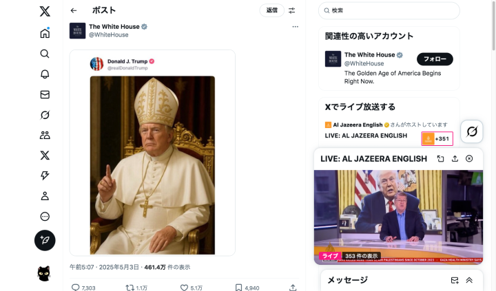 世界中が唖然とした、ホワイトハウス公式の発信…●害虎さん作成のAI画像…