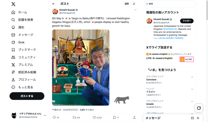 駐英大使、英国文化の勘違いは謝罪し、アドヴァイスを求める謙虚さが人気のようです。