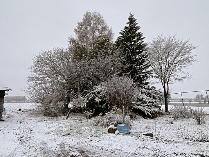 結局、お昼くらいまで霙だったので、家の周りは冬景色に逆戻り。