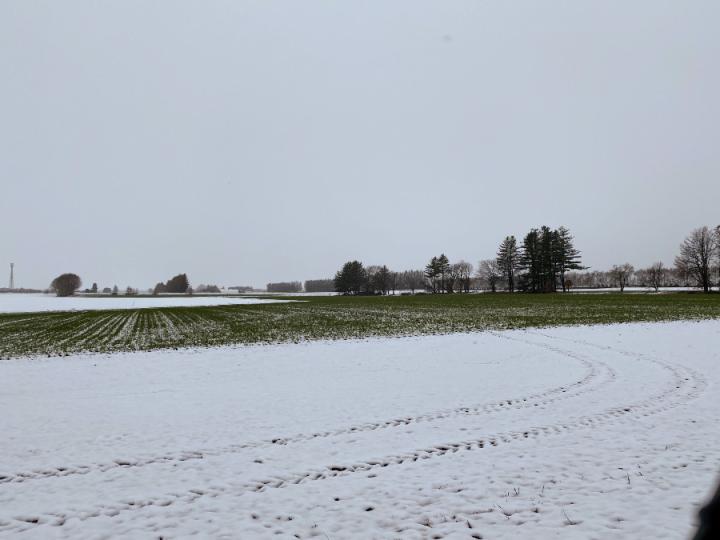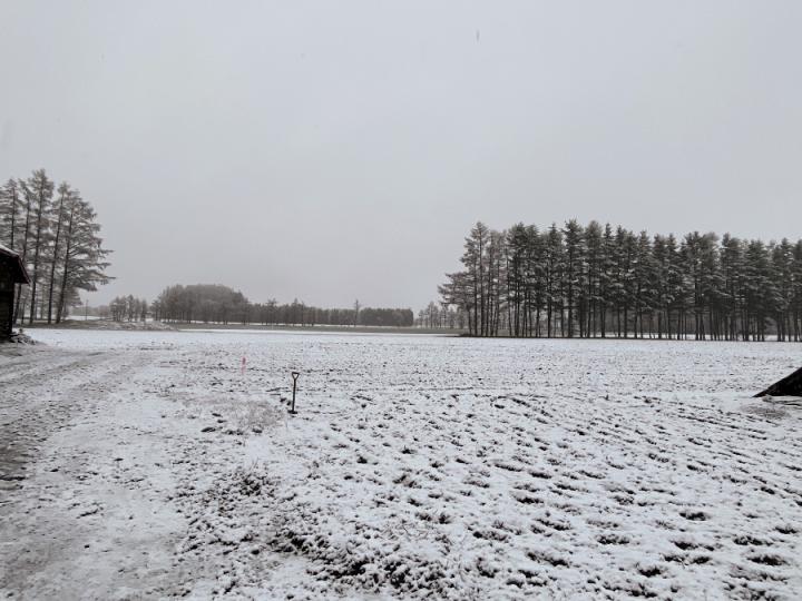 14時頃、車で小麦畑の横を通ったらこの積雪ですよ。