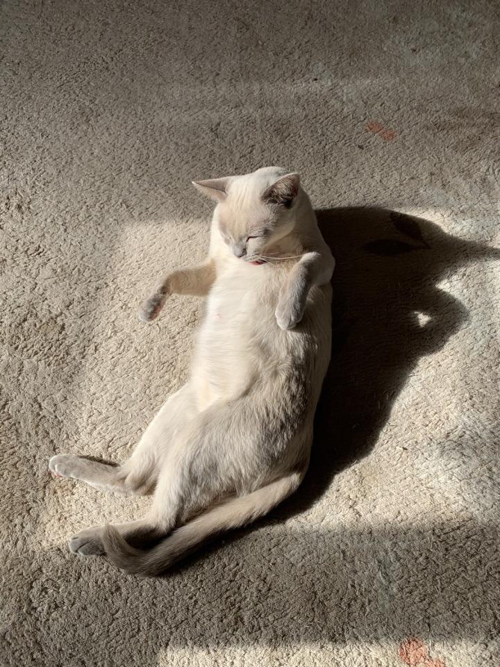 シャミはリビングでどてーんとして待ってました。