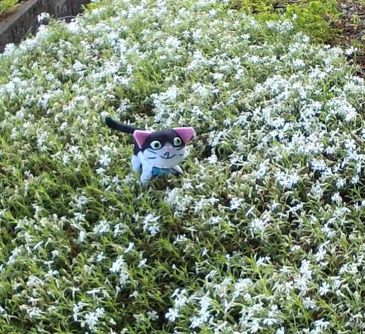 「んニャ訳ニャいか~。白い芝桜ニャ。」
