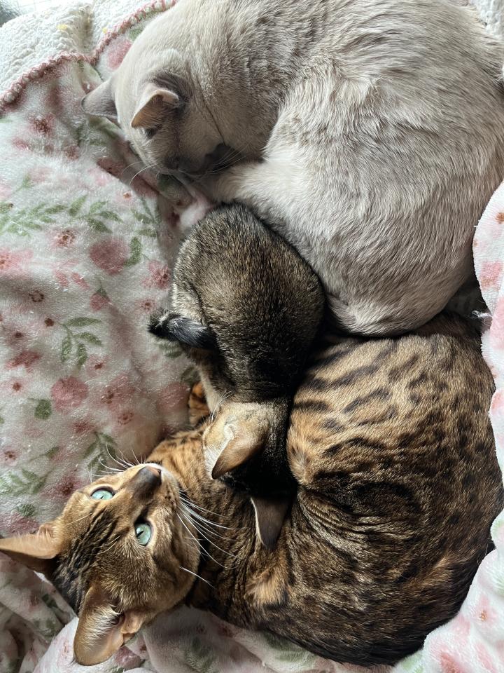 まだチビネコがいた頃のこんな写真があったー。親子3人でいるのが微笑ましい。