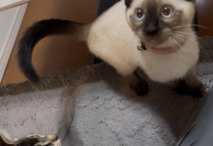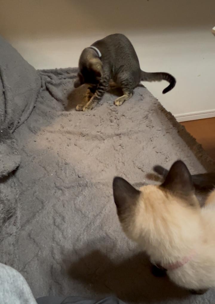 キキは鈴が気になるみたいで首が折れるんじゃないかってぐらい変な角度に曲げて頑張って咥えたり、手で鳴らしてみたり、壁に鈴を擦り付けたりしてました笑