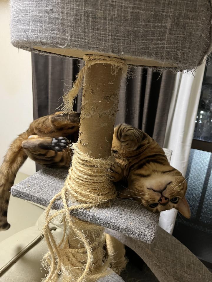 しゅーちゃん、多分新しいキャットタワー欲しいんだろーなぁ。私が直すの出来ないし。
