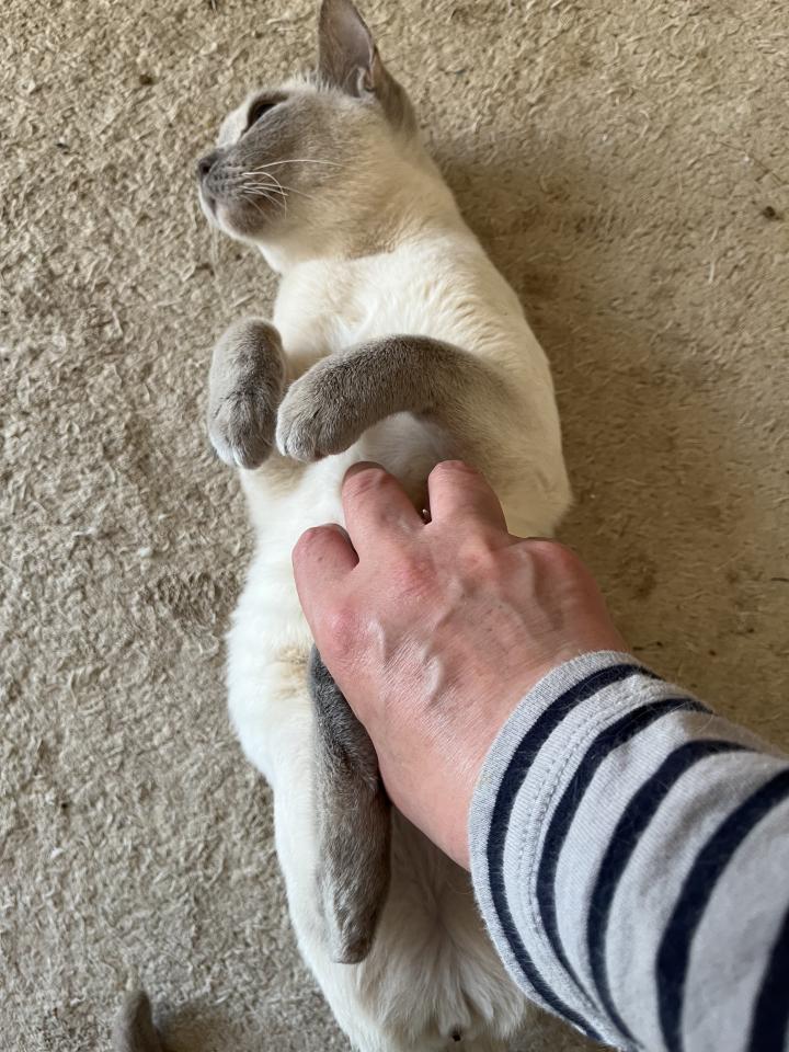 アイちゃんは、腹を撫でろとゴロリンすること1日数回。撫でないと、ついて来てゴロリンするのです。撫でるまで諦めない。撫でられるの飽きると自分から足蹴りするか、コロッと起きてどこかへ…
