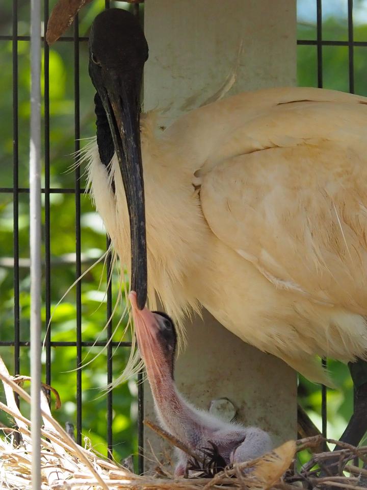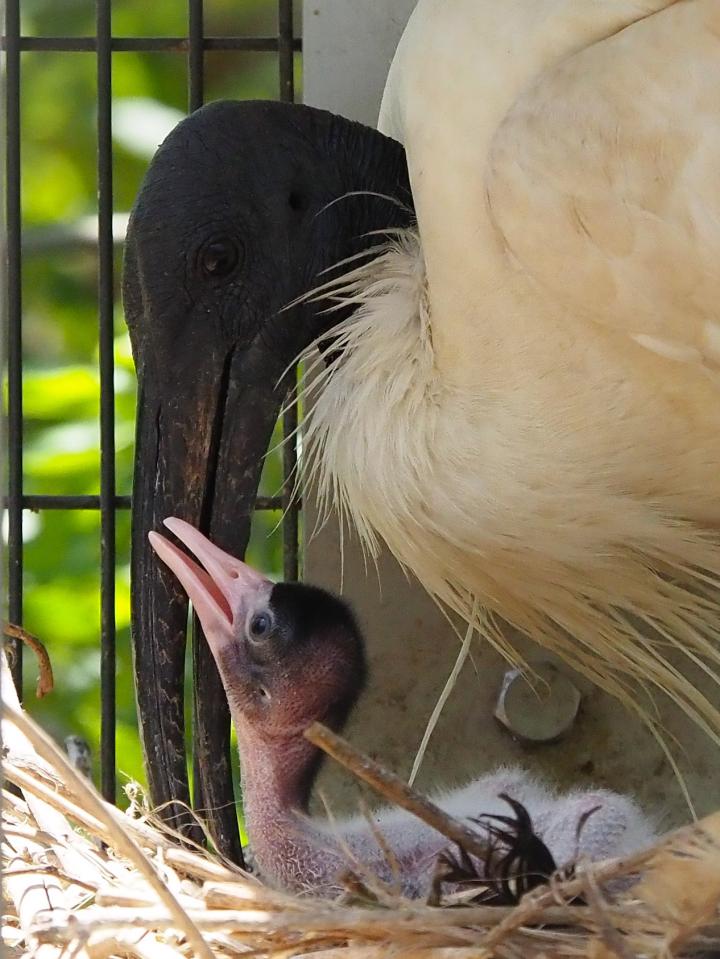 動物園では何羽もいて、巣作りの葉っぱを運んでました😆