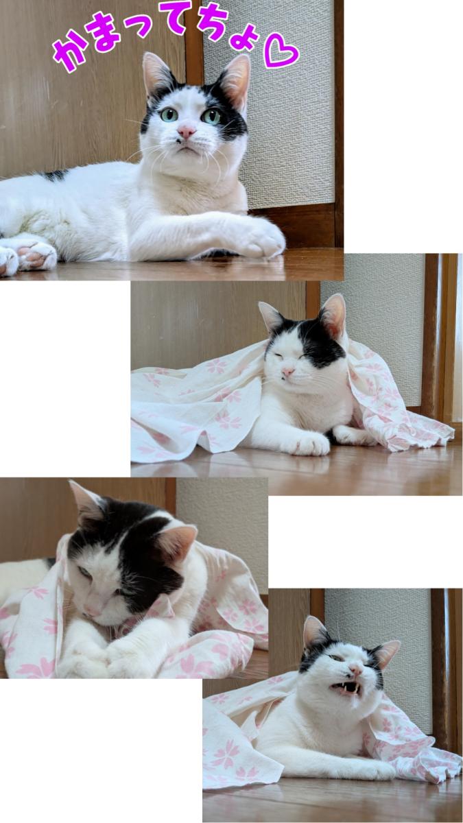 5月22日MVいただいたネコ写も、具合悪い中洗濯物を畳んでいたら、かまってちょ!って廊下にゴロリン♡