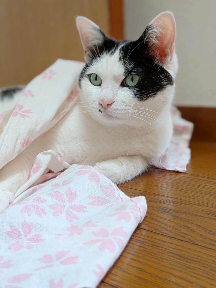 桜模様の手ぬぐいを出しては引っ込めてこんなに感じに撮れました。