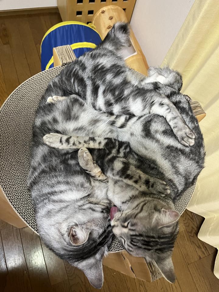 バリバリボウルタワーをLサイズに替えたら、2匹で寝られるようになりました✌️