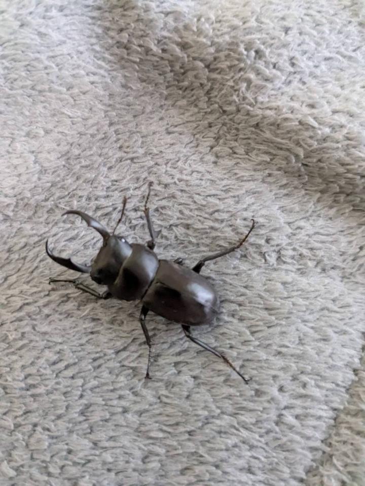 なぜか朝、夫の布団の上にクワガタ虫!(近くに山とかないのに…びっくり!)