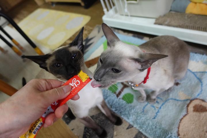 福ちゃん😾「へへっ、ポニョ😻の薬の御褒美ちゅーる、あたしも もらっちゃうからね~(^^♪」
