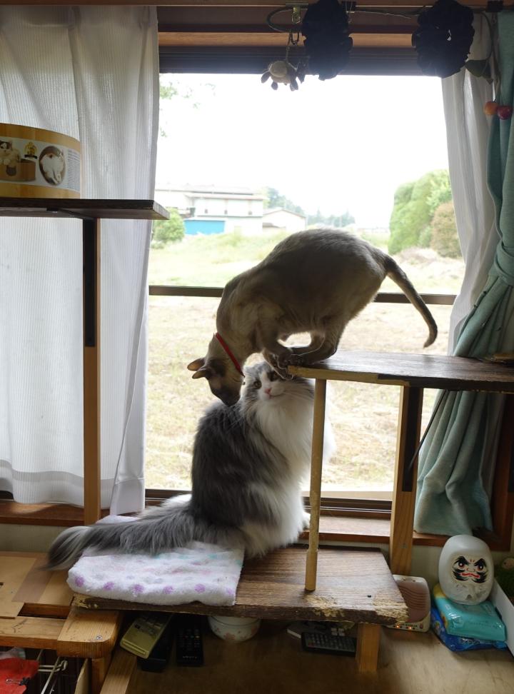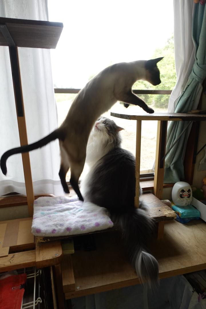 麻花瑠🐱「ルビィお姉ちゃん😻は、お手々ついてから乗るよねー(*^-^*)」