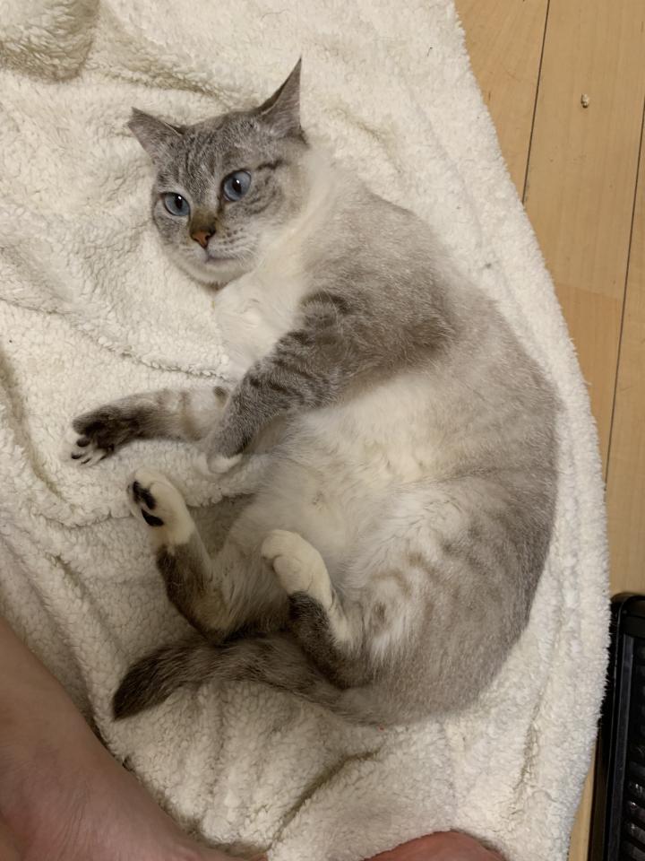 甘えん坊で肩に乗ったり、朝は鼻チューで起こして来たり、可愛い猫でした。でもずっと縁がなくて、原因は保護した時に猫風邪を引いて、そのせいで目の大きさに左右差があったことだと思われます。👀