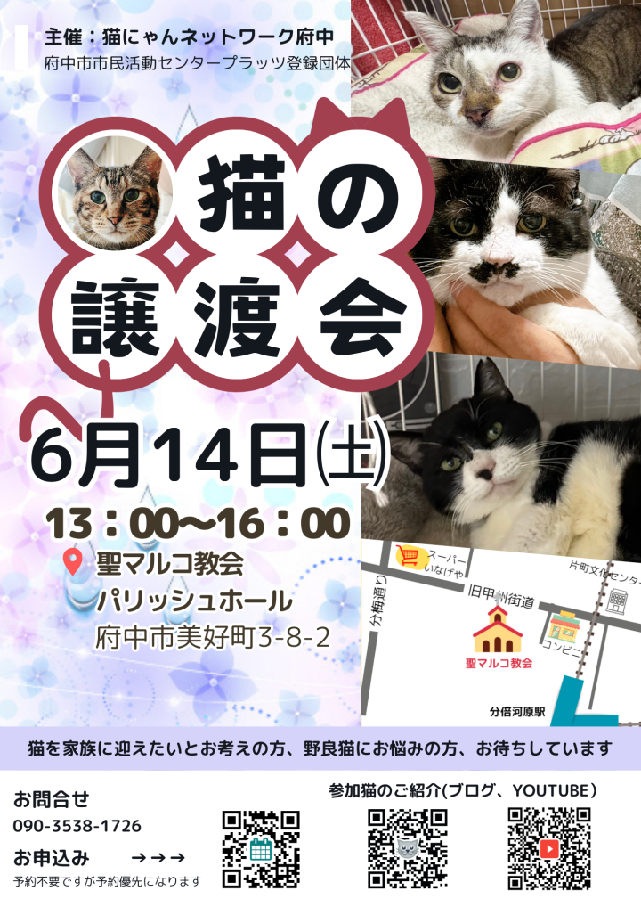 🐱猫にゃんネットワーク府中さんの譲渡会に、🐱ラブとハッピー府中の猫さんも参加します。