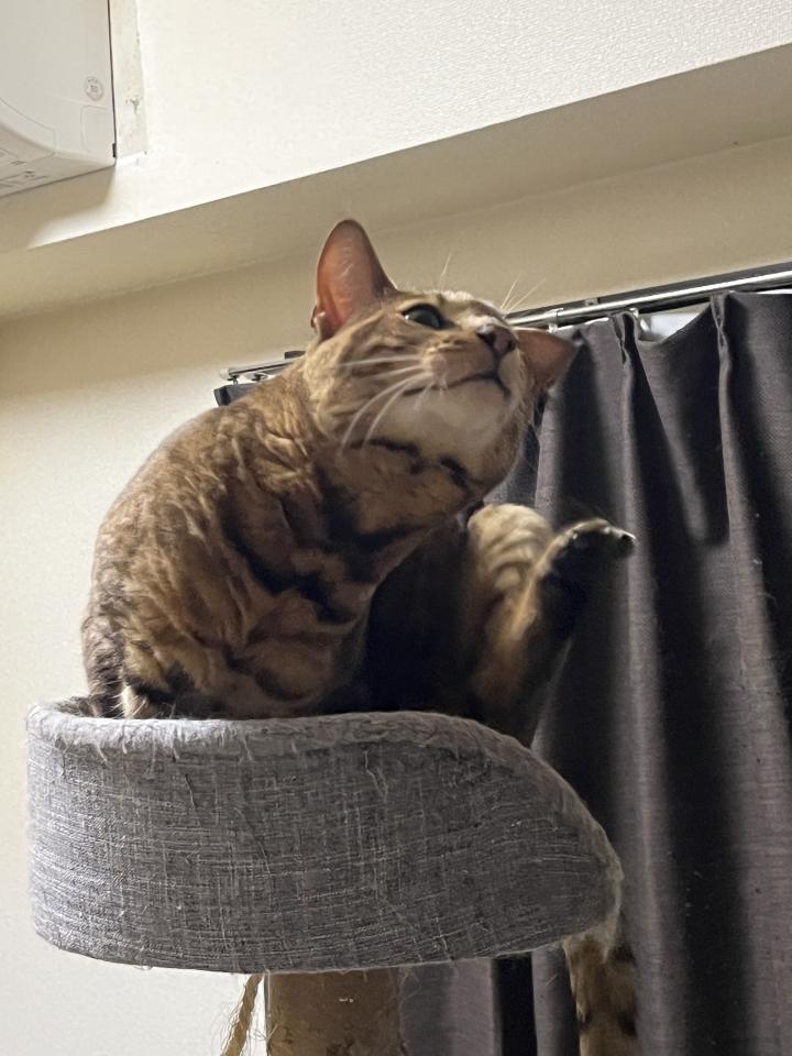 イタズラという名の仕事人。キッチンの冷蔵庫やらレンジフード、電子レンジ、トースターの上にいることが増えてる。
