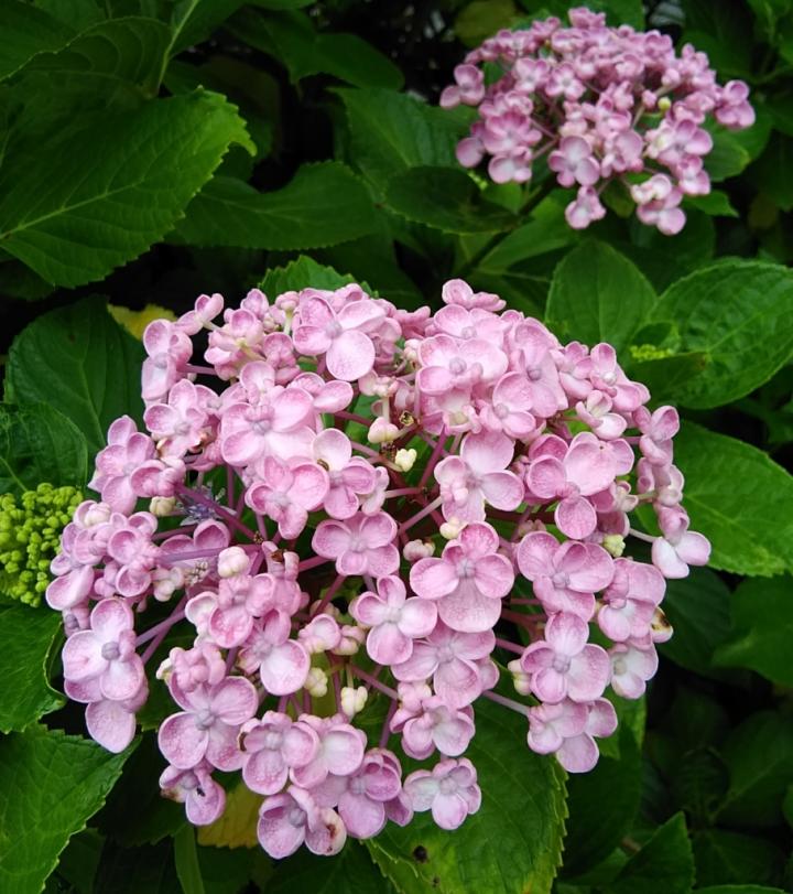 お多福あじさいです。古い品種ですが、今どきでも好ましいかぎり
