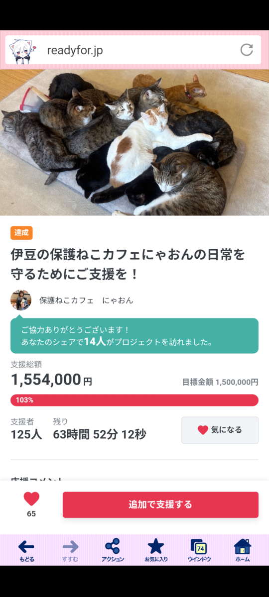 ねこカフェにゃおんのクラウドファンディング。