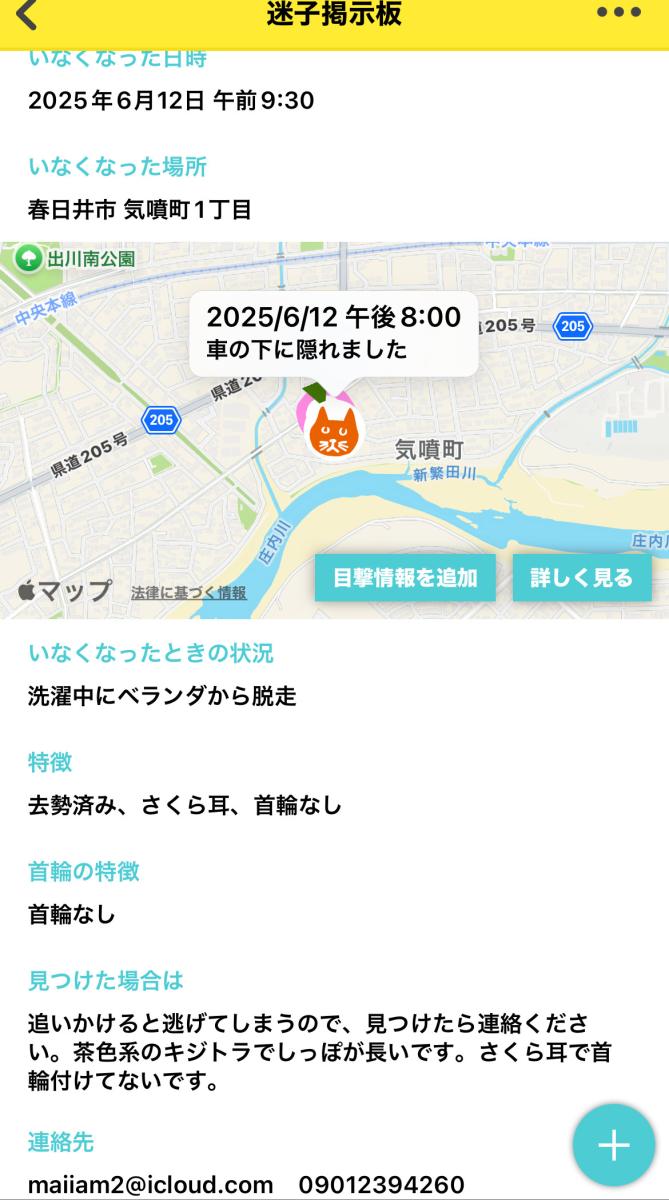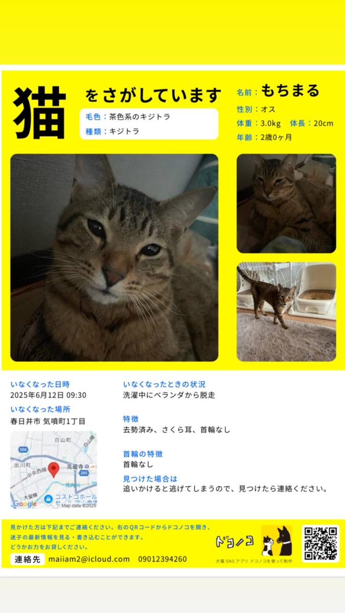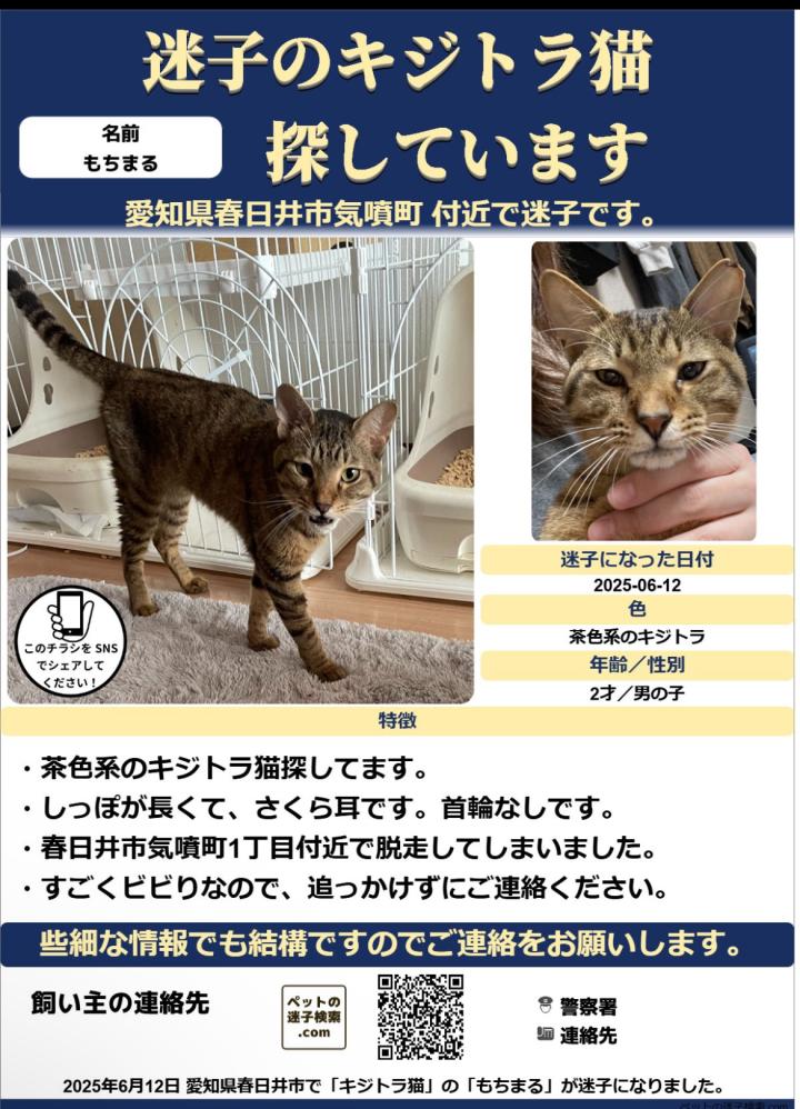 愛知県春日井市気噴町にて迷子猫を探してます。