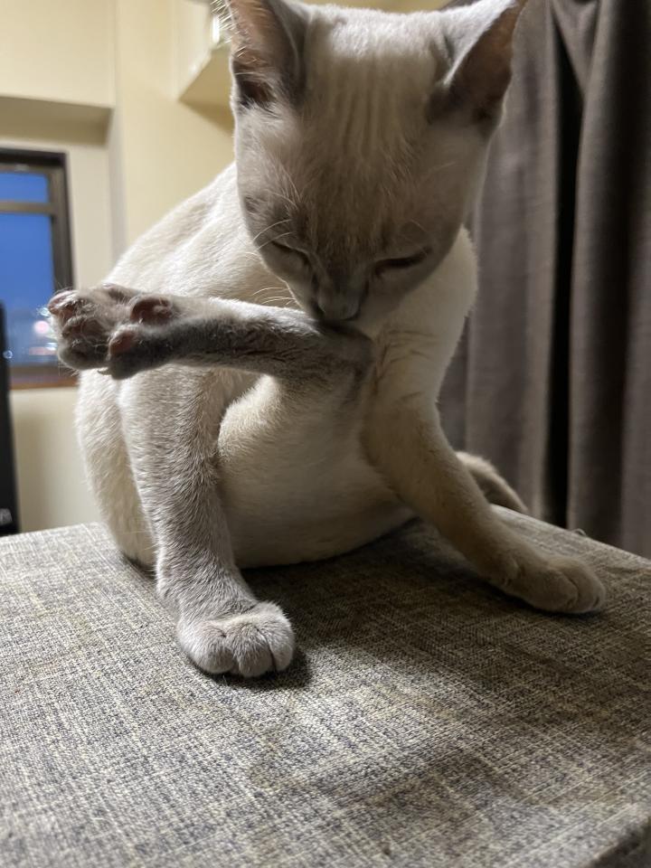 アイちゃんは自分をペロペロ