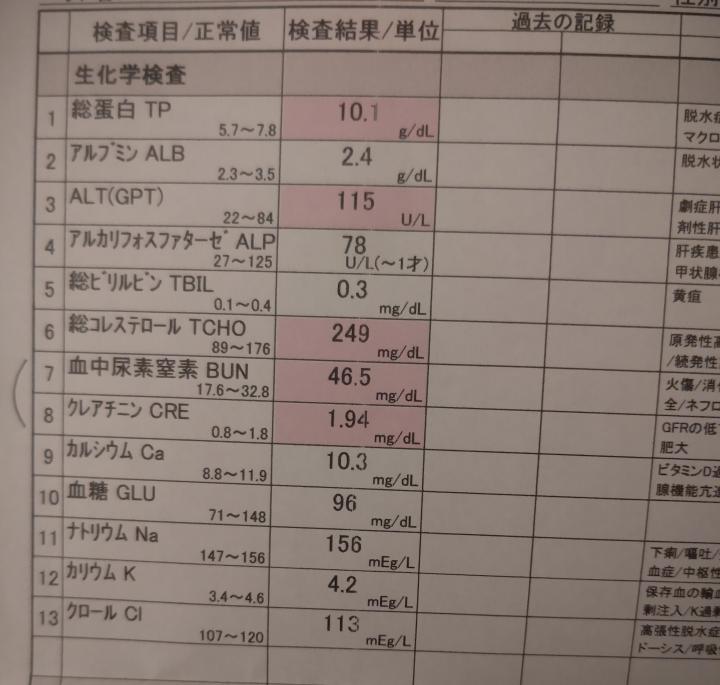 ただ腎臓の数値がちょっと良くなかったようです。